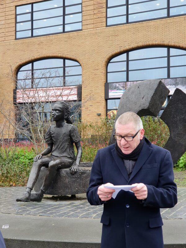 Vandaag werd bij het Slavernijmonument een nieuw icoon uit de reeks TilburgsAns aangeboden. Een bijzonder moment, omdat dit nieuwe beeld het monument en het gedeelde verleden van onze stad zichtbaar maakt voor een breed publiek.